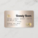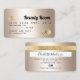 Um elegante e moderno, na moda belty Hair e um cartão de visita do estilo de cartão de crédito do artista maquiador com uma tipografia de fontes moderna num fundo de trendy de vidro metálico amarelo-escura. todo o texto é personalizável, adicione suas mídias sociais. Apresentando falso listras de ouro. Adicione seu logotipo, seu monograma e código QR.