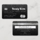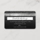 Um elegante e moderno, na moda, Cabelo de beleza e cartão de visita do estilo de cartão de crédito artístico de maquiagem, com uma tipografia de fontes moderna em um fundo de moda preto-branco. Todo o texto é personalizável, adicione suas mídias sociais. Apresentando uma falso faixa prateada. Adicione seu logotipo, seu monograma e código QR.