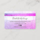Um elegante cartão de visita do estilo de cartão de crédito de artista, na moda e Hair, com uma letra moderna, com uma letra de tipografia moderna num gradiente de cor roxa-rosa-púrpura-claro e fundo de tendências de mármore branco-vírgula-branca. todo o texto é personalizável, adicione as suas redes sociais. Apresentando uma faixa roxa rosa. Adicione seu logotipo, seu monograma e código QR.