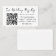O design de cartão de registro de casamento preto e branco moderno e mínimo apresenta o seu código de QR personalizado num Web site de casamento para que os convidados possam aceder a ligações para registros online. O texto preto e a cor branca do fundo podem ser atualizados para coordenar com o esquema de cor do casamento.