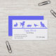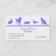 Cartão de visita de assento do animal de estimação à moda feito em azul e em branco, com as silhuetas azuis de animais domésticos, na parte superior e na área de texto abaixo daquele. O texto no azul e no preto é inteiramente customizável serir suas necessidades do negócio.