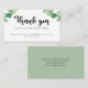 Obrigado seus clientes pelo primeiro pedido com este cartão de desconto. Projetado para proprietários de compro pequenos, esta placa deve ser incluída quando você enviar as ordens do cliente. Personalize-o com seus próprios detalhes. Apresentando lindos elementos de design de folhagem botânica do eucalipto. Moderno e elegante.