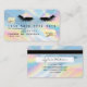 Seja uma verdadeira moça Lash com este cartão de crédito moderno holográfico, estilizado cartão de visita com lascas e cores unicórnicas com efeito de gotejamento e seu logotipo adicionado! Ideal para pequenas empresas, butiques, chibatadas, indústria de beleza....
