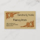 Colchete em ângulo direito, com três folhas de tamanhos variados, senta nos cantos superior esquerdo e inferior direito. Personalizar com o nome, Empresa, Endereço e Número/s de Contato A imagem é vermelha/castanha escura em fundo bronzeado.