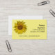 A imagem de girassol foi posterizada, colocada no canto superior esquerdo e colocada sobre um fundo amarelo pálido. Personalize com informações de negócios em linhas escalonadas à direita e entre em contato com os números na parte inferior.