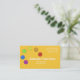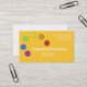 Personalize este cartão para um artista, pintor, artesão. Seis pontos de cores primárias: roxo, azul, verde, amarelo, laranja e vermelho estão em uma curva na parte superior esquerda do cartão. Informações de contato: Nome da empresa, endereço da rua, site, telefone e e-mail estão em texto branco em fundo amarelo/laranja.
