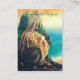 Imagem frontal: Jesus sentado sobre uma rocha cercada por árvores e um lago