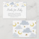 Um belo design com nuvens e estrelas azul bebê. Estes livros para cartão de inserção de bebês podem ser personalizados. Todo o texto pode ser editado para texto, fonte, cor, tamanho e posicionamento.