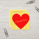 Compartilhe gratidão sincera neste Dia dos Namorados com um encantador cartão de agradecimento com coração vermelho e padrão de gingão amarelo. Perfeito para uso pessoal ou comercial.