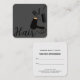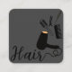 Este cartão foi projetado para ajudar os cabeleireiros a agendar compromissos com seus clientes de forma fácil e rápida. Ele apresenta um design moderno e na moda com Cinza e esquema de cores pretas. O cartão também inclui espaço para o nome do cliente, data do compromisso e informações de contato.