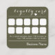 Elegante cor verde-escura cor verde-escura 10 socch cartão de recompensa de fidelidade, com texto personalizado. Esta peça tem um bonito roteiro de estilo caligrafia, combinado com uma forma cardíaca, tudo em branco. Abaixo estão os espaços para uma empresa marcar cada visita do cliente, após 10 vezes que há um presente ou recompensa do cliente, que você pode especificar através do texto personalizado.