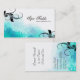 Promova seus termas com este redemoinho frondoso azul e branco da cerceta elegante e profissional e splotches o cartão de visita. Este cartão é perfeito para gerentes dos termas, salões de beleza, cabeleireiros, técnicos do prego, cantores, letristas, restaurantes, bistros, adegas, floristas, planejadores wedding, lojas do vestido de casamento, lojas, joalheiro, ourivesarias, lojas de roupa, desenhadores de moda, designer de interiores, e qualquer um que procura um olhar elegante, profissional. Este cartão de visita caracteriza um redemoinho frondoso da silhueta preta com flourishes splotchy. O design 2012 do Pam de Copyright.
