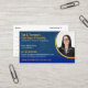 Personalize isto é modelo de cartão de negócios da foto para o reparo e a assistência do crédito e fazem-lhe seus próprios. As cores são azuis e ouro. Adicione a lista de serviços à parte traseira do cartão de visita.