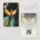 Design de Anjo Celestial 🌙 Cartão de visita de Código QR. Faça uma impressão inesquecível com este cartão de visita espiritual atordoante, projetado para leitores de tarô, curandeiros de energia, praticantes de Reiki e guias holísticos. A frente da carta apresenta uma bela mulher mística com asas de anjo ouro, em pé numa cena cósmica sonhadora. Ela veste um vestido esmeraldo-verde, iluminado por estrelas cintilantes e luz ouro. O fundo celeste cria uma estética mágica, de outro mundo, perfeita para aqueles que trabalham com energia espiritual, divinação e cura intuitiva. A parte traseira da placa fornece um layout elegante e limpo com texto personalizável para seu nome, detalhes de contato, site e mídia social. Isso permite que você mostre seus serviços profissionais de leitura de tarô, cicatrização de Reiki, astrologia ou trabalho de energia enquanto mantém um sentimento etéreo e místico. Ideal para leitores de tarô, curadores de energia, astrologistas, ou qualquer pessoa nas artes metafísicas, esta carta captura a essência do seu artesanato. O design luxuoso não só dá uma impressão duradoura, como também se conecta aos clientes em um nível mais profundo e espiritual. Perfeito para promover sua empresa em eventos, workshops ou leituras pessoais.