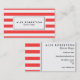 Um design chique que caracteriza listras brancas e vermelhas horizontais com uma caixa branca no centro para seus nome e profissão.