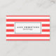Um design chique que caracteriza listras brancas e vermelhas horizontais com uma caixa branca no centro para seus nome e profissão.