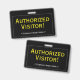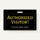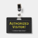 Este design de crachá profissional apresenta a mensagem "Visitante autorizado!" e um nome personalizável da empresa ou outra mensagem personalizada. Ele também apresenta uma borda de linha de solteiro. Um crachá como este poderia ser usado para mostrar que alguém em uma empresa ou no local de trabalho é um convidado ou visitante autorizado. [~Z0000307]