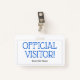 Características deste design simples do crachá VISITANTE OFICIAL da mensagem "! ", e um nome da empresa customizável ou a outra mensagem feita sob encomenda. Igualmente caracteriza uma beira de uma única linha. Um crachá como este poderia ser usado para identificar que alguém em um local de trabalho ou em um negócio é um convidado/visitante autorizados. [~Z0000307]