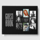 Uma bela fonte em negrito diz "livro convidado" e tem uma colagem de 8 modelos de fotos à direita para suas fotos ou imagens personalizadas. A cor do fundo e da fonte pode ser alterada de preto e branco para qualquer uma de suas opções. São ideais para novos lançamentos de negócios; agências de modelagem ou qualquer negócio que gostasse de manter um registro de hóspedes assistindo a seus shows ou eventos.