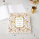 Bem-vindos aos seus entes queridos em estilo com este livro de hóspedes do casamento, com flores de borrão e flores de ouro. Projetado em um estilo de aquarela suave, esta elegante manutenção permite que os convidados compartilhem seus desejos calorosos, mensagens sinceras e assinaturas no seu dia especial. As florais românticas embutidas com sotaques de ouro criam um design de eterno que complementa os temas de boho, rústico e casamento moderno. Personalize o cobrir com seus nomes, data de casamento ou iniciais para um toque único que o torne verdadeiramente seu. Este livro de hóspedes personalizado não só serve como um detalhe significativo na sua cerimônia ou recepção, como também se torna um tesouro para revisitar por anos futuros. Lindo, prático e personalizável, é o toque perfeito para sua decoração de casamento.