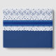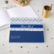 Elegante sinal de convidado de casamento azul real em livro com gráficos de renda branca, na metade superior, com uma fita azul. Personalize o texto para seu dia especial.