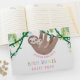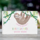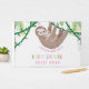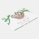 Celebre a minha futura mãe com este lindo livro de hóspedes do chá de fraldas de preguiça! Com uma adorável mãe pintada à mão e preguiça-bebê abraçando na selva. Vinhas cinzentas, flores rosa-doces e amarelas e folhas de selva verde macia decoram o fundo. O fundo tem um padrão de folha verde claro e escuro.