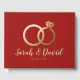 Um belo livro de convidados de casamento com os falsos anéis de casamento dourados - completamente adaptado aos seus detalhes. Este design clássico é uma opção de excelente para qualquer recepção de casamento.