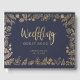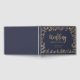 Um belo livro de hóspedes azul de meia-noite com flores de folha de ouro falsa - completamente adaptado aos seus detalhes. Este design clássico é uma opção de excelente para qualquer recepção de casamento.
