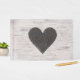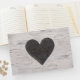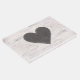 Livro de hóspedes do casamento russo, com um fundo de madeira de pássaro branco. Um coração rústico, na frente do livro, tem monogramas de uma letra de noiva e noiva prontos para personalizar.