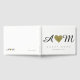 Um livro em que visitantes ou convidados de um evento (como o seu casamento) assinam seus nomes... um coração de ouro falso de amor com suas próprias iniciais lado a lado... item branco, limpo e elegante para suas memórias do "melhor dia de sempre"