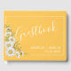 O design do guestbook de casamento personalizado bonito apresenta cores brancas margaridas canto sobre fundo amarelo daffodil com blocos de texto personalizáveis brancos em fontes modernas