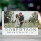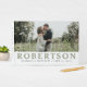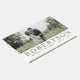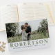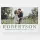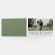 Este livro de fotos contém sua foto favorita na frente. Sua sobrenome é apresentada em uma fonte verde grande para todos os bonés, com seus primeiros nomes e data de casamento em preto. "O casamento de (noiva e nome do noivo) e a data estão listados na coluna. O texto pode ser personalizado para ajustado das suas necessidades.