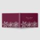 Livro de hóspedes de inverno feito em burgundy com gráficos de flocos de neve brancos e prateados, do fundo. Personalize os campos de texto para seu dia especial.
