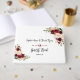 Encantador, Borgonha, Vermelho, design de Cartão Floral de Marsala. Apresenta lindas flores borgonhentas, douradas marsala, com a palavra-d'água, um guião "livro de hóspedes", tudo em fundo branco. Use a ferramenta Personalizar para adicionar suas informações. Por favor, visite minha Coleção Floral Burgundy Red Marsala