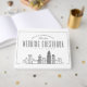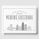 Faça uma impressão com um guia de casamento. Este livro de hóspedes do casamento "Charlotte" apresenta um único e moderno horizonte deco da Rainha City, na parte inferior, e os nomes do casal do casamento, o nome da cidade e a data do casamento acima dele. Os elementos de texto em linha aberta de na moda complementam a frente e a coluna vertebral do livro, enquanto as cinzas de carvão sólido cobrir a coluna vertebral e as costas. Um tratamento visual que irá capturar os olhos dos seus convidados de casamento e de fora das torres e deixá-los querendo deixar a sua assinatura e dentro de mensagens personalizadas.
