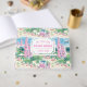 Este design de livro de hóspedes apresenta uma cena de praia de pré-disquete com um castelo de areia rosa. Você pode personalizar com seu nome de família, seu nome de Air BNB ou sua localização. Este livro de hóspedes é perfeito para uma casa de férias na praia ou aluguel.