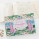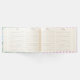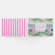 Este design de livro de hóspedes apresenta uma cena de praia de pré-disquete com um castelo de areia rosa. Você pode personalizar com seu nome de família, seu nome de Air BNB ou sua localização. Este livro de hóspedes é perfeito para uma casa de férias na praia ou aluguel.
