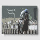 Cavalo De Corrida Com Jockey Em Azul, Livro De Convidados. Arte Digital. O cavalo de corrida Steeplechase puro criado com jockey em boné azul, galope em direção à linha de chegada em Shawan Downs, Maryland. Totalmente personalizável. Edite o texto de seu gosto.