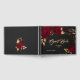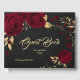 belas e elegantes flores de burgundy com algumas folhas de ouro, chic Black convidado book. Os detalhes de brilho são simulados
