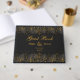 Chic e ouro elegante deixam o livro de convidados de casamento.