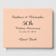 Este Livro de Convidado/Inscrição do Partido Mínimo Personalizado Peach e Anniversário Negro é decorado com uma cor de fundo de pêssego e texto preto. O padrão diz "50º Aniversário", mas é fácil personalizar nomes e número de anos, basta alterar ou excluir texto de exemplo. Todos os Direitos Reservados © 2019 Alan & Marcia Socolik.