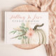 Capture memórias sinceras com esta elegante Apaixonando pelo Livro de convidados do Bebê, perfeita para sua celebração do chá de fraldas de outono. Apresentando um fundo de marfim cremoso adornado com uma delicada abóbora de aquarela branca e verde exuberante no outono, incluindo eucalipto, rosas de pincel, grama de pampas e pena de faisão, Este livro de convidados convida seus entes queridos a escrever bons desejos, nomes e mensagens para bebês. O texto personalizável acrescenta um toque pessoal a essa lembrança, fazer-a uma lembrança tesourada para os próximos anos. Projetada especialmente para o chá de fraldas de queda de uma menina, ela coordena-se lindamente com convites, cartazes, favores e decoração correspondentes da coleção para um evento coeso e charmoso.