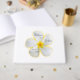 Um conjunto único de convites para o casamento, com uma fotografia de perto de uma flor branca de Plumeria, com um brilho amarelo atrás dela. Um símbolo havaiano de "positividade" e "novos começos". No Havaí, essa flor é usada para colares de lei fazer por causa de sua forma e perfume doce.