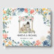 Este encantador livro de convidados de casamento apresenta uma bela fronteira floral e o casal de gato mais bonito de amarrar o nó. A noiva veste flores em seu cabelo e o noivo esportes um chapéu e gravata arco.
