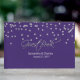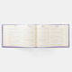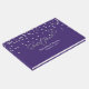 Glamoroso livro de convidados de casamento feito em roxo com gráficos de diamantes espalhados pela metade superior. O texto gráfico de tom de prata lê Guest Book (Livro de Convidados). Personalize o texto personalizado, para seu dia especial.
