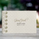Chic ivory convidado de casamento em livro feito em um olhar de roupa com fita de marfim e um filme de metal com aspecto de ligação. O texto gráfico de tom Dourado lê Guest Book (Livro Convidado). Personalize o texto personalizado para atender às suas necessidades de casamento. Muito bom.