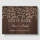 Livro de hóspedes russo personalizado com luzes brancas e brilhantes sobre fundo de madeira castanho-escura.+++++++ Ideal para inverno, outono ou país rústico elegante no verão no exterior ou casamentos com temas agrícolas.
