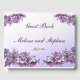 Lilases adoráveis são o tema deste elegante livro de hóspedes com uma borda de guloseimas lilás cor-de-rosa e mauve em um plano de fundo púrpura claro gradiente. O texto pode ser personalizado para sua ocasião especial.