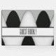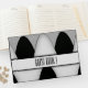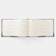Livro de design preto e branco único com área para nome do evento e data na coluna do livro.