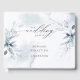 Livro de Convidados de Casamento | Folhas etéreas azuis e poeirentas e lavagem a aquarela, esta bela ilustração feita com a pintura manual de aquarelas oferece tons de azul mudo com realces de fleck. A caligrafia manuscrita é combinada com uma fonte de estilo minimalista e contemporânea. Uma procura de tendências para todas as estações. Esta é parte de uma coleção de papelaria de casamento Watercolor Dusty Blue Foliage com acessórios de casamento correspondentes. © WhimsicalArtwork criada para o BarefootBride™